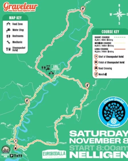✅ Compulsory check-in & bottle drop at the Community Hall 100km (Monument riders).